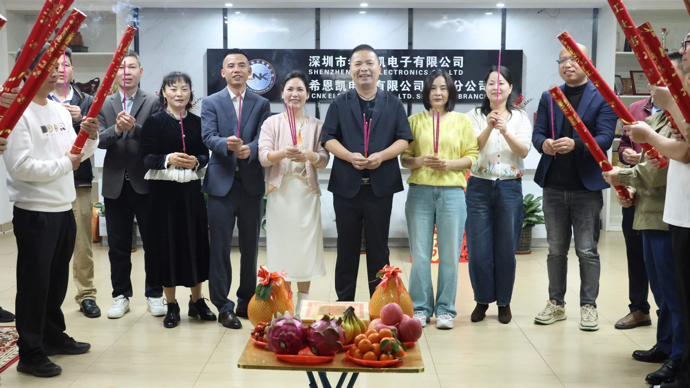 Таң атқанда компанияның жоғарғы басшылығы жиналып, барлық қызметкерлерді бастап, салтанатты ашылу рәсімін өткізді. Парталардан хош иісті түтіндер көтеріліп, құрбандықтар көп болды. Бұл біздің аспан мен жерге деген құрметімізді білдіріп қана қоймай, сонымен қатар барлық қызметкерлердің жылы ауа-райы мен жұмысы бірқалыпты болсын деген жүрекжарды тілектерін жеткізді. Хош иісті заттардың арасында көшбасшылар үлкен ықыласпен хош иісті заттарды ұсынды, жаңа жылда компанияның үлкен жоспарлары үшін баталар мен сәттіліктер үшін дұға етті.