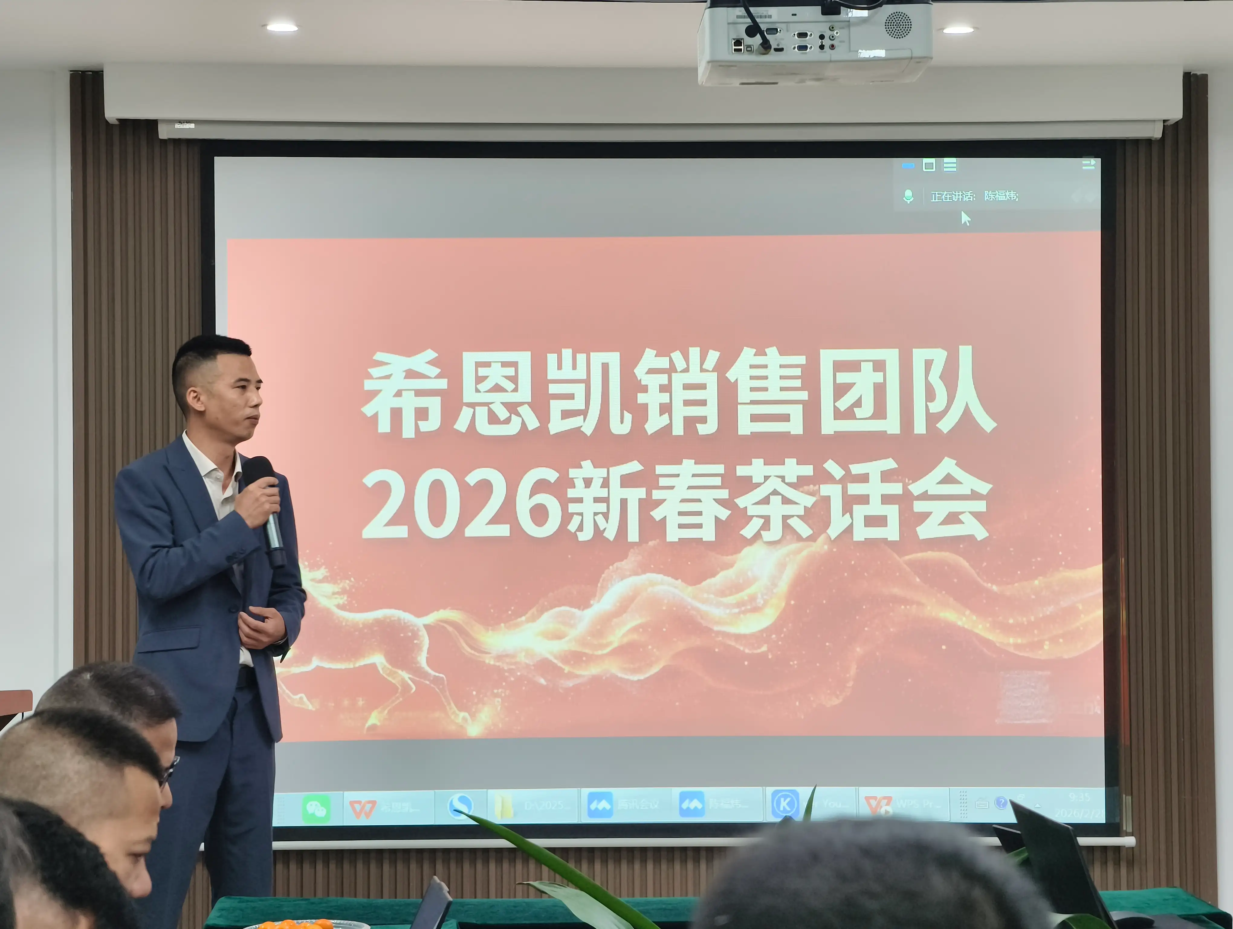 Төраға Сату департаментінің 2025 жылғы жетістіктерін толығымен растады және әр топ көтерген үміттерге бір-бірден жауап берді. Тао Тэ Чингтен даналыққа сүйене отырып, ол сату және жеке өсу жолын ашып, мақсат қоюдың және әдісті зерттеудің, өзін-өзі басқарудың және жаңашылдықтың маңыздылығын атап өтті. Ол сонымен қатар сыртқы имиджге, тұлғааралық қарым-қатынасқа және эмоционалды байланысқа қатысты сату философиясымен бөлісті. Бұдан басқа, ол компанияның негізгі клиенттерге қызмет көрсету, қаржылық қолдау және жобаны қамтамасыз ету жөніндегі саясатын таныстырып, барлығын өз сенімін нығайтуға, клиенттің қажеттіліктерін белсенді түрде зерттеуге және компанияның дамуымен жеке өсуді біріктіруге шақырды. Ол өз сөзін команданы 2026 жылғы міндеттерді жаңа стильмен және жаңа үміттермен қабылдауға шақыру арқылы аяқтады. Келесі сұрақ-жауап сессиясы бағытты одан әрі нақтылап, команданың рухын көтерді.